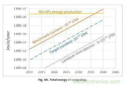 现在,让我们退后一步,将半导体(和电子)行业视为功耗的来源,包括服务器,存储,高功率计算(HPC),有线网络,4G和5G基站,这些应用都需要高性能。半导体行业协会(SIA)和半导体研究公司(SRC)在2015年发布了“重启IT革命:行动起来”报告,其中包括下图: