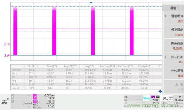图2 输出短路时MOS管波形Vds_max=67.2V