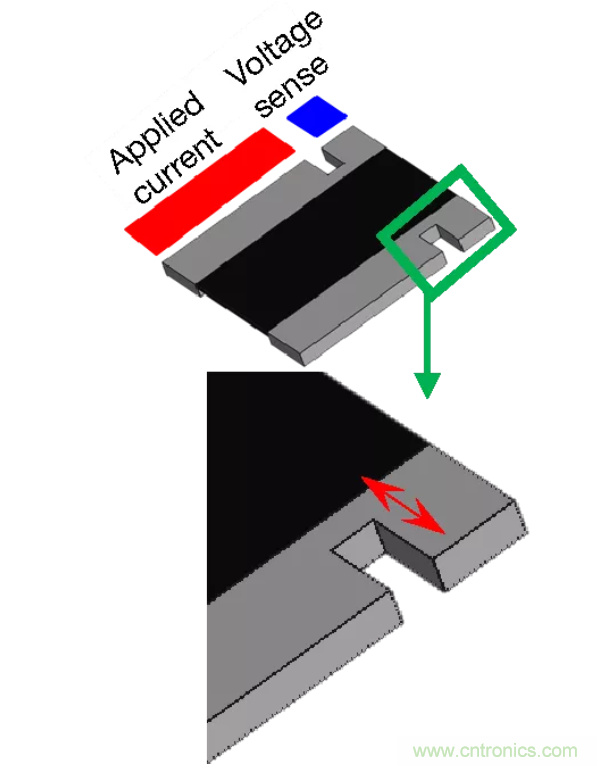 铜可以降低测量电流的连接电阻。在电阻合金上开槽会造成电阻合金测量部分无电流,从而导致测量电压升高。缺口是在铜 TCR 影响与测量精度和重复性之间所做的一种折衷。