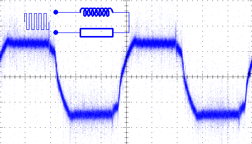 但是,实际情况,要比上述方波电流复杂。在前面推文中,有两次进行过相关的讨论。当赛道的面积比较大的时候,赛道电磁线存在比较大的电感感抗,这使得输出电流波形不再是一个方波信号。下图显示波形分别对应的赛道电感值从10uH变化到250uH左右的时候,输出电流波形的变化情况。