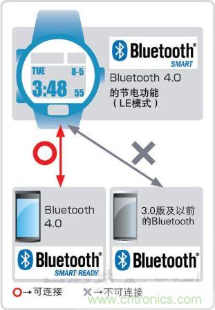 只支持Bluetooth 4.0中增加的节电功能(LE模式)的终端,与支持Bluetooth 3.0及以前标准的终端无法连接。从产品附带的标记来看,要想使用带“Bluetooth SMART”标记的产品,需要与带“Bluetooth SMART READY”的产品配套。
