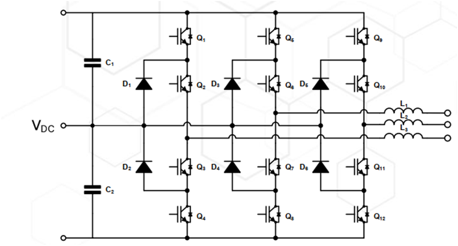 三电平I-NPC和三电平ANPC是电源转换系统(PCS) 中常见的双向拓扑结构, 可满足输出功率不断增长的需求。 与两电平拓扑相比, 三电平拓扑需要更多的元器件、 驱动信号以及更复杂的控制结构。 但其优势也十分明显:三电平结构能够有效降低功率损耗和电流纹波(由于所承受电压减半) , 并具有更好的抗电磁干扰(EMI) 性能。