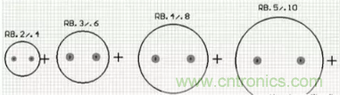 电解电容对应的元器件封装为RB系列,如“RB.1/.2”到“RB.5/1.0”,其中“.1/.2”分别指电容的焊盘间距和外形尺寸。