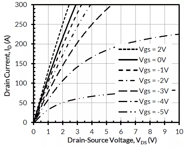 图4:VGS = 2 V与VGS = 0 V相比电阻较低,可用于1200 V双栅极FET