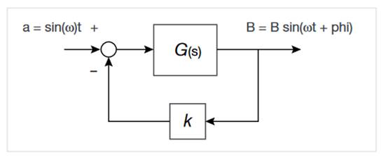 图 1 显示了一个广义控制回路,其中将正弦波 a(t) 应用于具有传递函数 G(s) 的系统。在初始条件引起的瞬变衰减后,输出 b(t) 变成具有不同幅度 B 和相对相位 ω 的正弦波。输出 b(t) 的幅度和相位实际上与输入正弦波频率 (Ω rad/s) 处的传递函数 G(s) 有关。反馈系数“k”决定了输入信号如何根据输出端的负载进行调节。