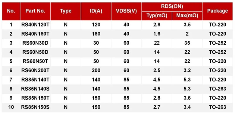 在DC-DC升压电路中,选用MOSFET作为开关器件,场效应管所需承受的最大电压约为20-30V左右,选型时MOS管的最大耐受电压应留有余量一般会选择40V以上的MOS。MOS管推荐使用瑞森半导体低压MOS系列,选型如下: