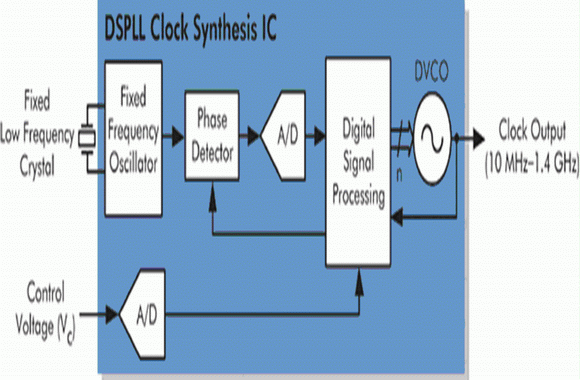 精密CMOS技术的进步提高了电路的速度和运算能力,厂商因此能以DSP为基础发展出强大的频率合成组件,并利用它们设计高频率、低抖动的新型石英振荡器和压控石英振荡器。这种把频率合成组件与固定低频率石英谐振器结合在一起的做法既可提供相当于传统石英振荡器或压控石英振荡器的功能,又可在使用者指定的多个频率下操作。
