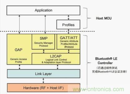 图2:主机和Bluetooth® LE控制器堆栈结构