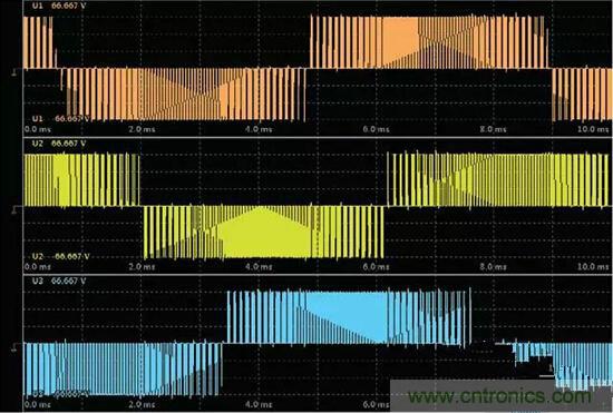 众所周知变频器是工作在斩波模式的,目前使用较多的是SPWM,所谓SPWM,就是在PWM的基础上改变了调制脉冲方式,脉冲宽度时间占空比按正弦规律排列,这样输出波形经过适当的滤波可以做到正弦波输出。PWM频率一般在几KHz到几十KHz,根据数学建模分析,如果要准确测量PWM信号,仪器带宽至少达到变频器载波信号的200倍以上。