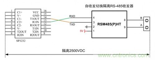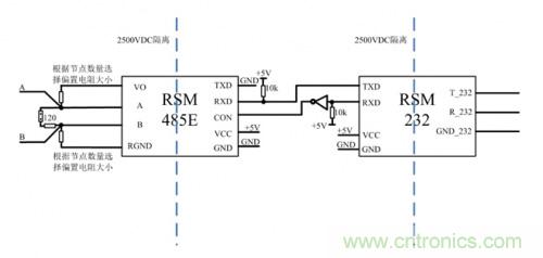 方案一是使用普通的TTL转232电平IC做232到TTL的电平转换,隔离电压2500VDC,方案二是232端和485端均采用隔离模块,485到232端的隔离电压可高达5000VDC。