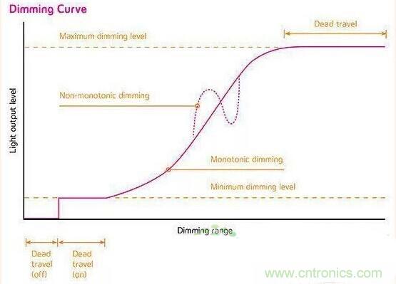 死区:当改变调光器导通角时,光输出却不跟随改变。