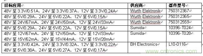 表 1:可与 LT8300 一起使用和现成有售的变压器