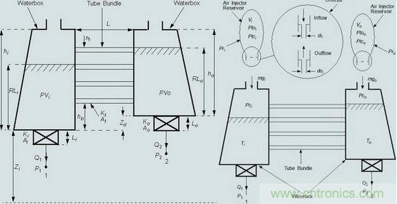 在这个模型中,冷凝器的结构为:水箱高2.6米,安装在基准水位以上3.7米处。管束延伸至水箱顶部以下0.35米处。为了避免工厂停止运转,假定可接受的最低安全标准为液面不能低于这个点。