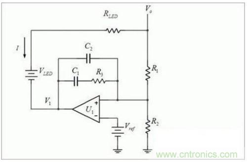 因为Vref 上电后就是稳定的了,所以被Rled*(R1+R2)除以后,很小,视为0。