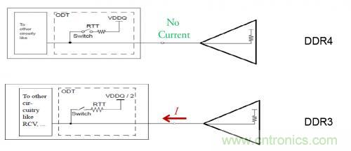 为了直观的看出端接方式的差异对总的功耗的影响,下面分别比较了在输出高和低得情况下,DDR4/DDR3的电流流向。