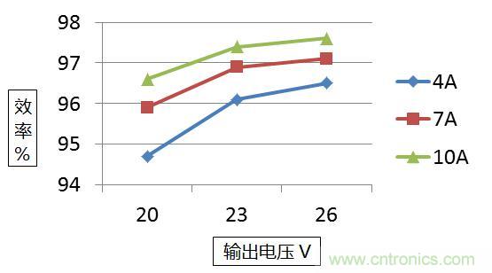 输出电流在4A/7A/10A的情况下,输出纹波电流都很小。