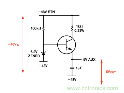 图9. 用于电源隔离器的分立式–48 V至5 V电源解决方案