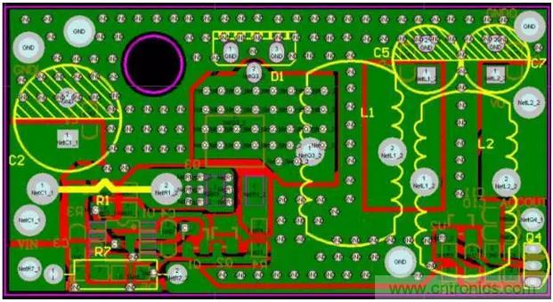 功率地线由于有大电流流过,如果处理不当就会产生很大的干扰,不能带重载,甚至不能正常工作.