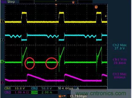 因此我们就可以很容易从波形上看出来反激电源是工作在CCM还是DCM状态。